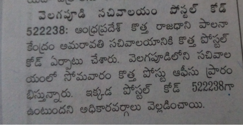Nfpe Bhimavaram New Pincode Allotted For Ap Capital Amaravathi
