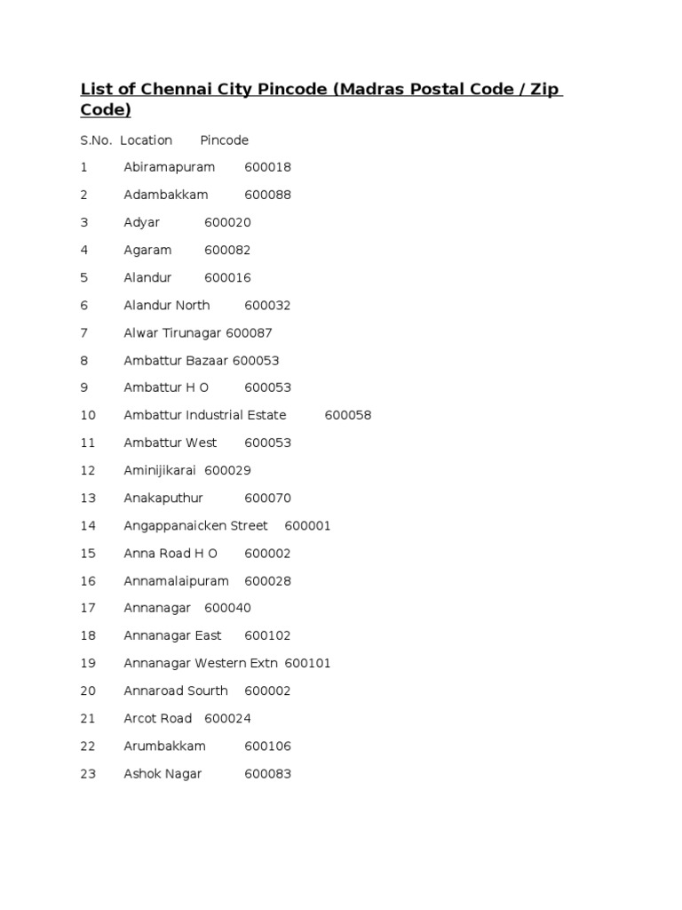 Chennai Pin Code Chennai City Zip Code And Postal Code Chennai