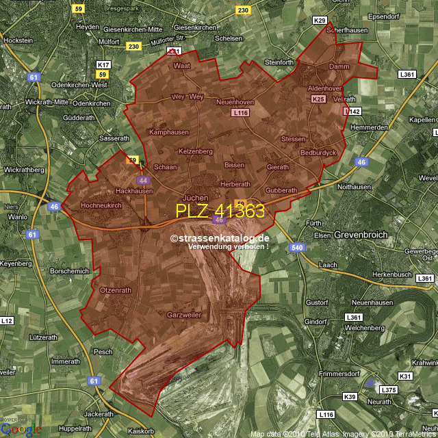 Plz Juchen Mit Karte Postleitzahlen 41363 Nordrhein Westfalen