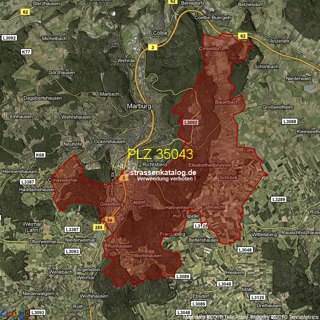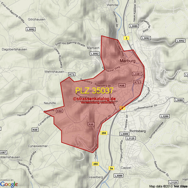 35037 Marburg Mit Plz Karte Und Strassenverzeichnis
