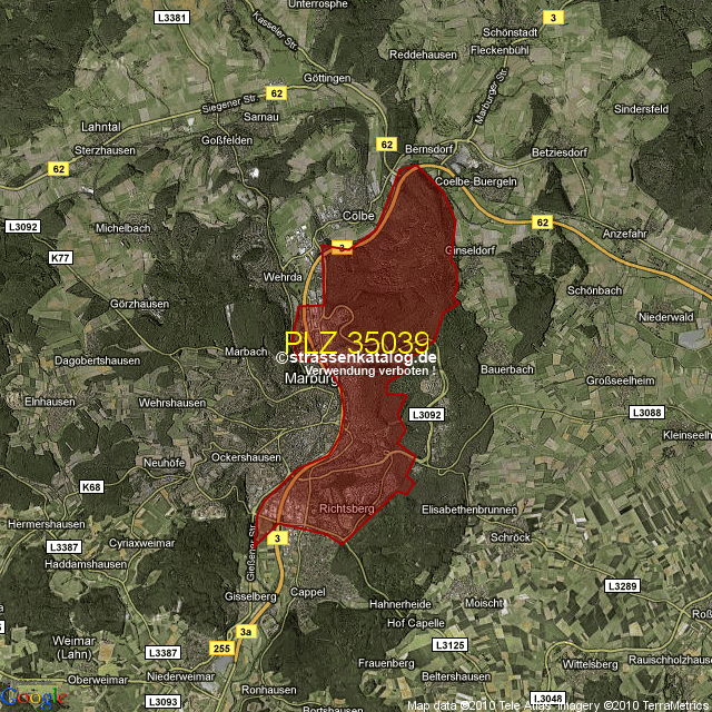 35039 Marburg Mit Plz Karte Und Strassenverzeichnis